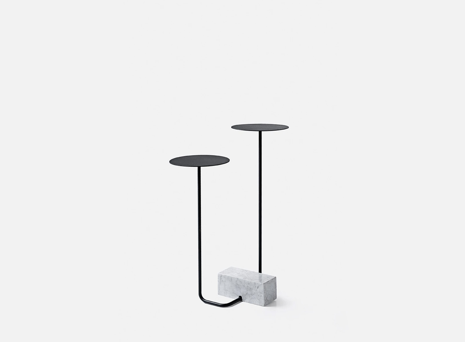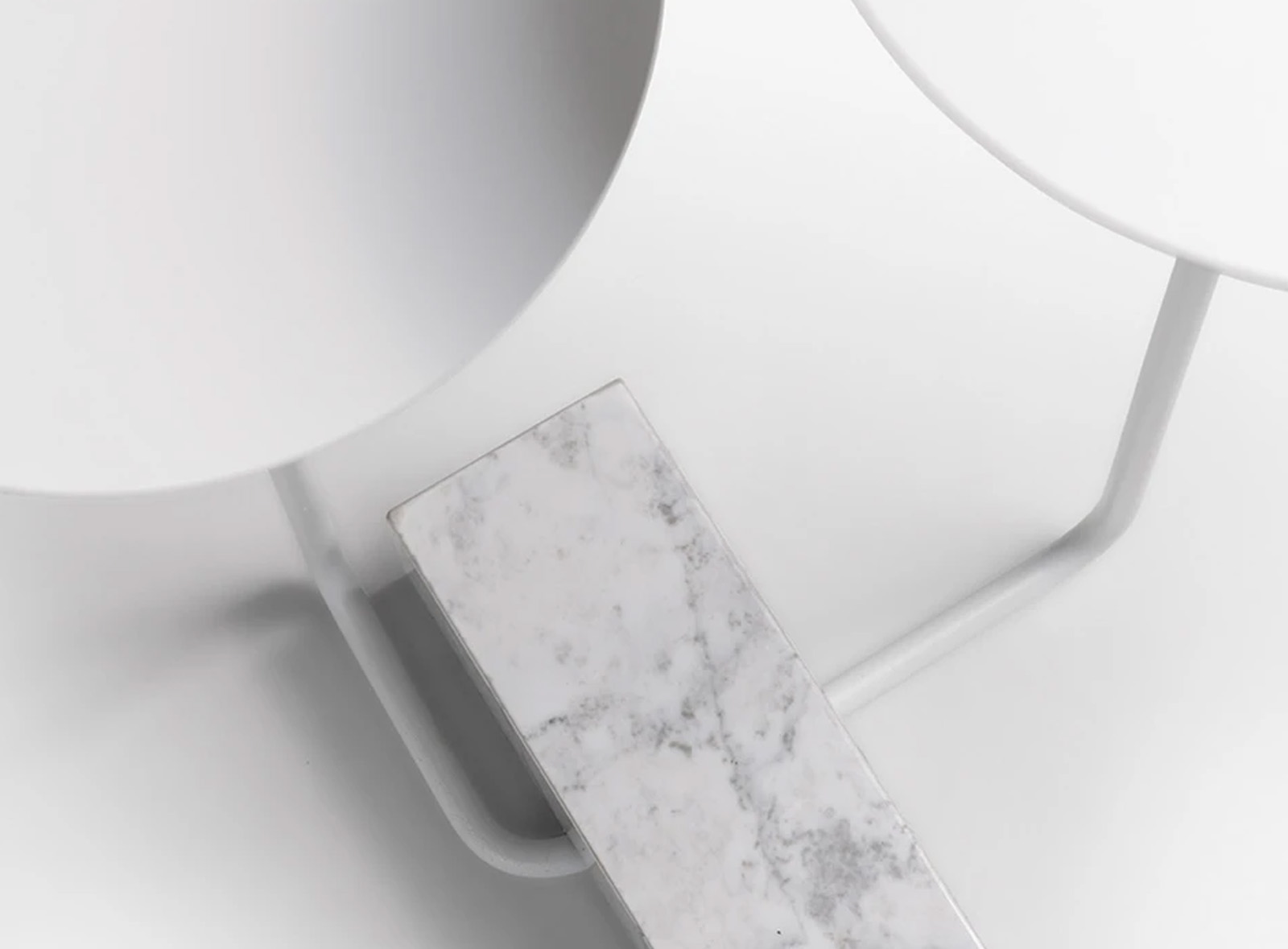 The sensation of movement and balance in static objects is one of our favorite design approaches and it is even more highlighted in the Adobe series. The tables are designed from a thin and continuous metal structure, balanced by a heavy marble block, which makes explicit the relation between the elements of the composition, as if each component would have an action over the other. Whether in a living room, bedroom, hall or even as a display of small objects, Adobe tables are presented as small functional sculptures, bringing organic forms to break the symmetry of the environments.