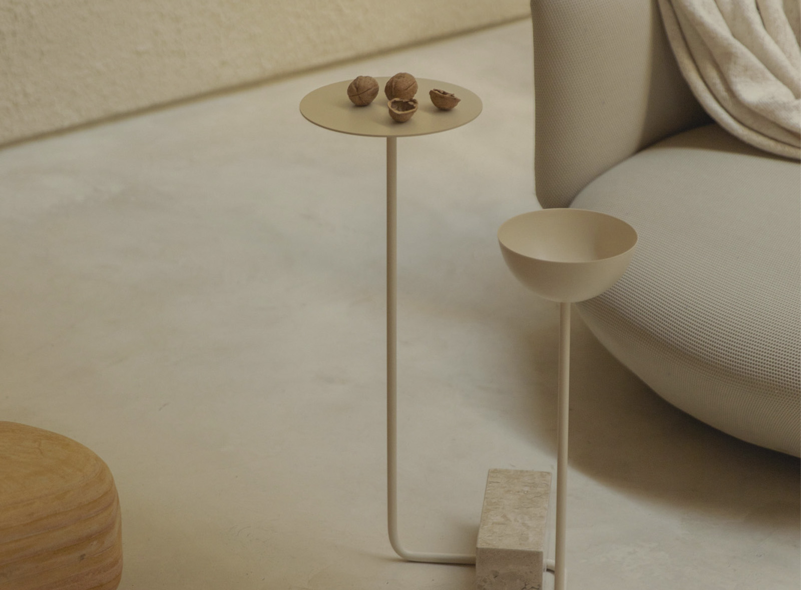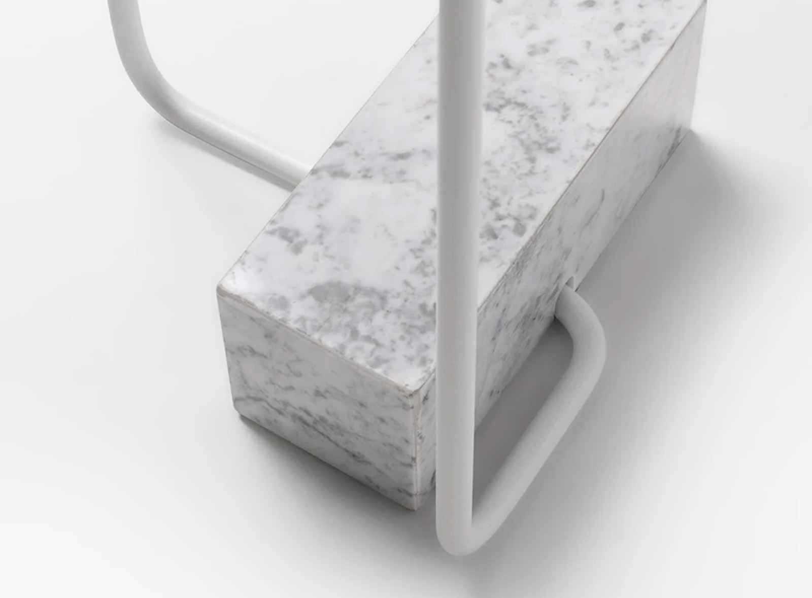 The sensation of movement and balance in static objects is one of our favorite design approaches and it is even more highlighted in the Adobe series. The tables are designed from a thin and continuous metal structure, balanced by a heavy marble block, which makes explicit the relation between the elements of the composition, as if each component would have an action over the other. Whether in a living room, bedroom, hall or even as a display of small objects, Adobe tables are presented as small functional sculptures, bringing organic forms to break the symmetry of the environments.