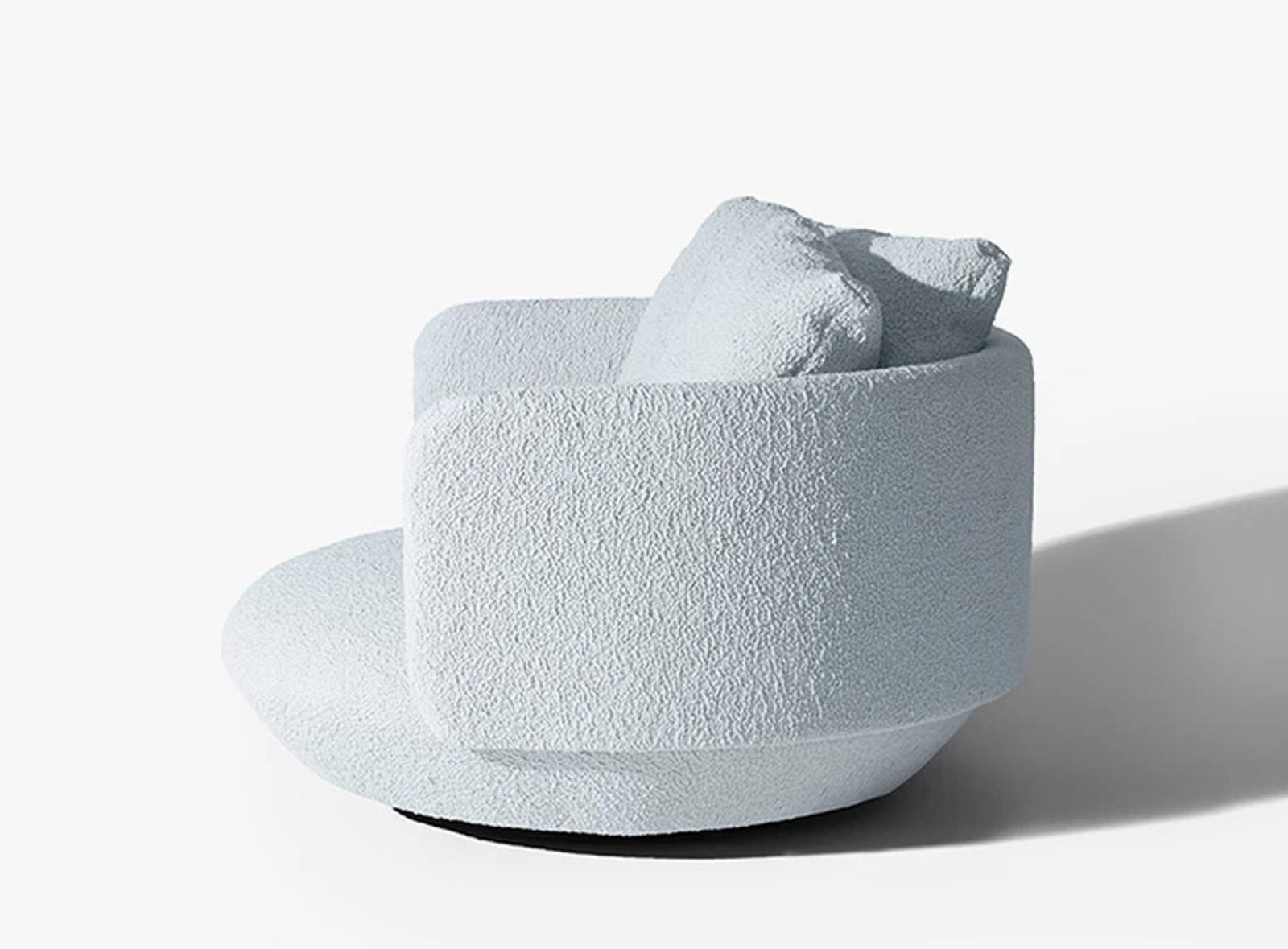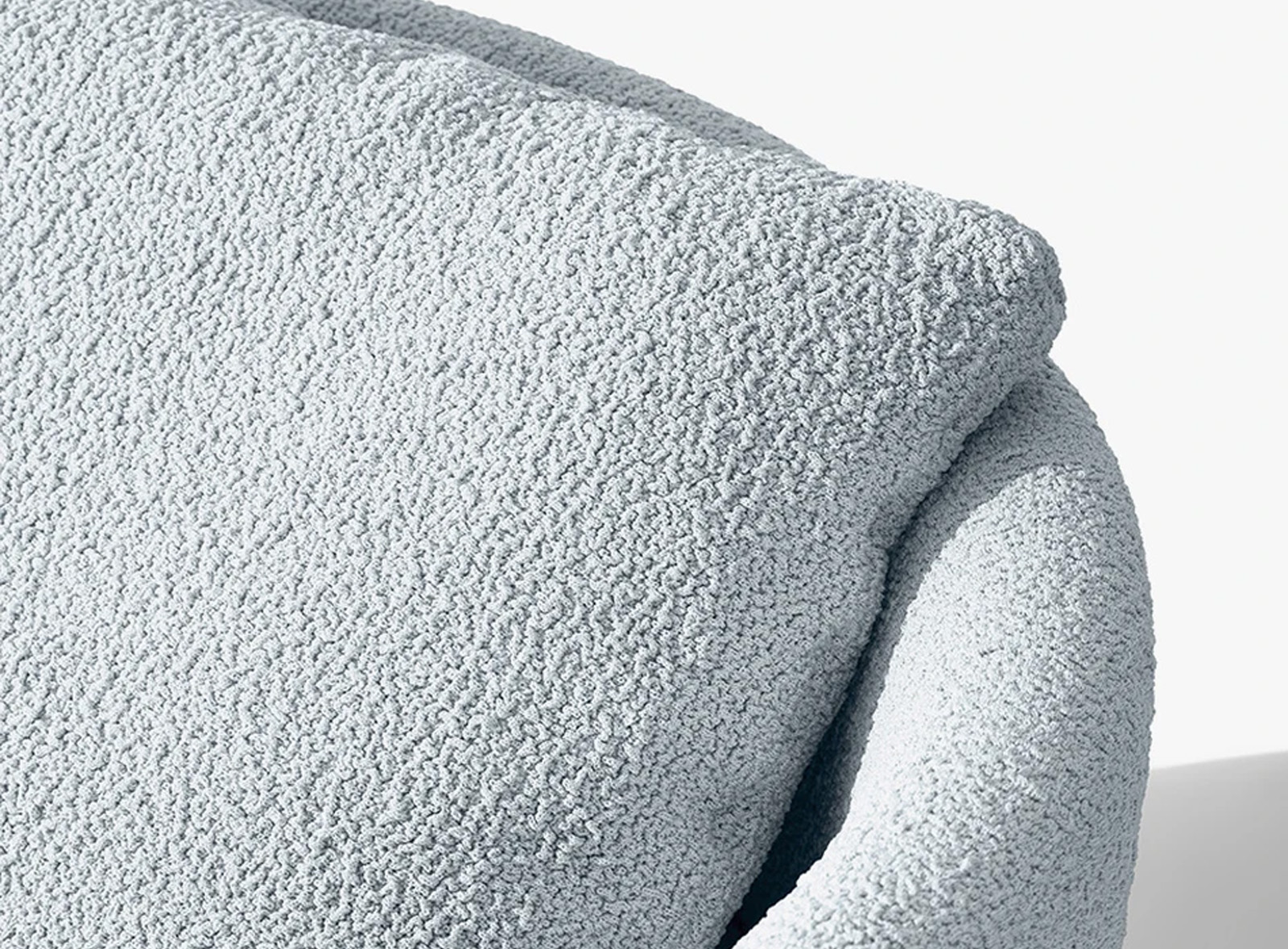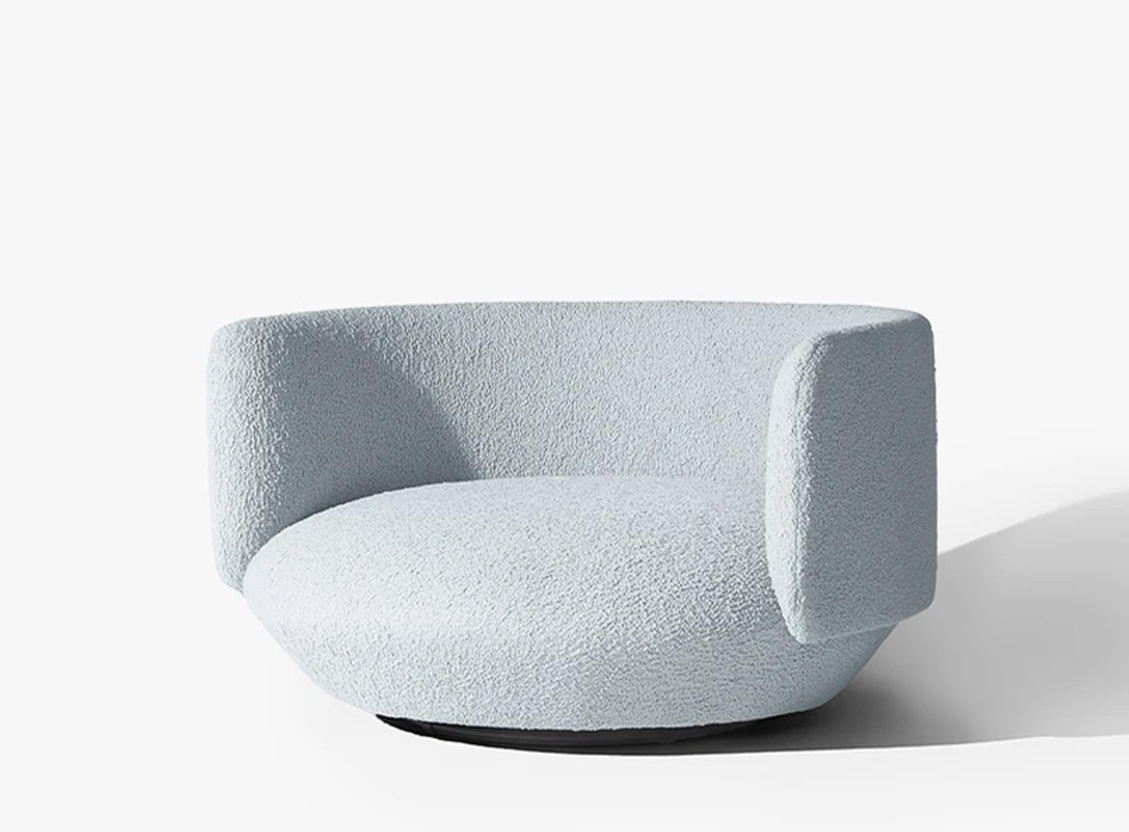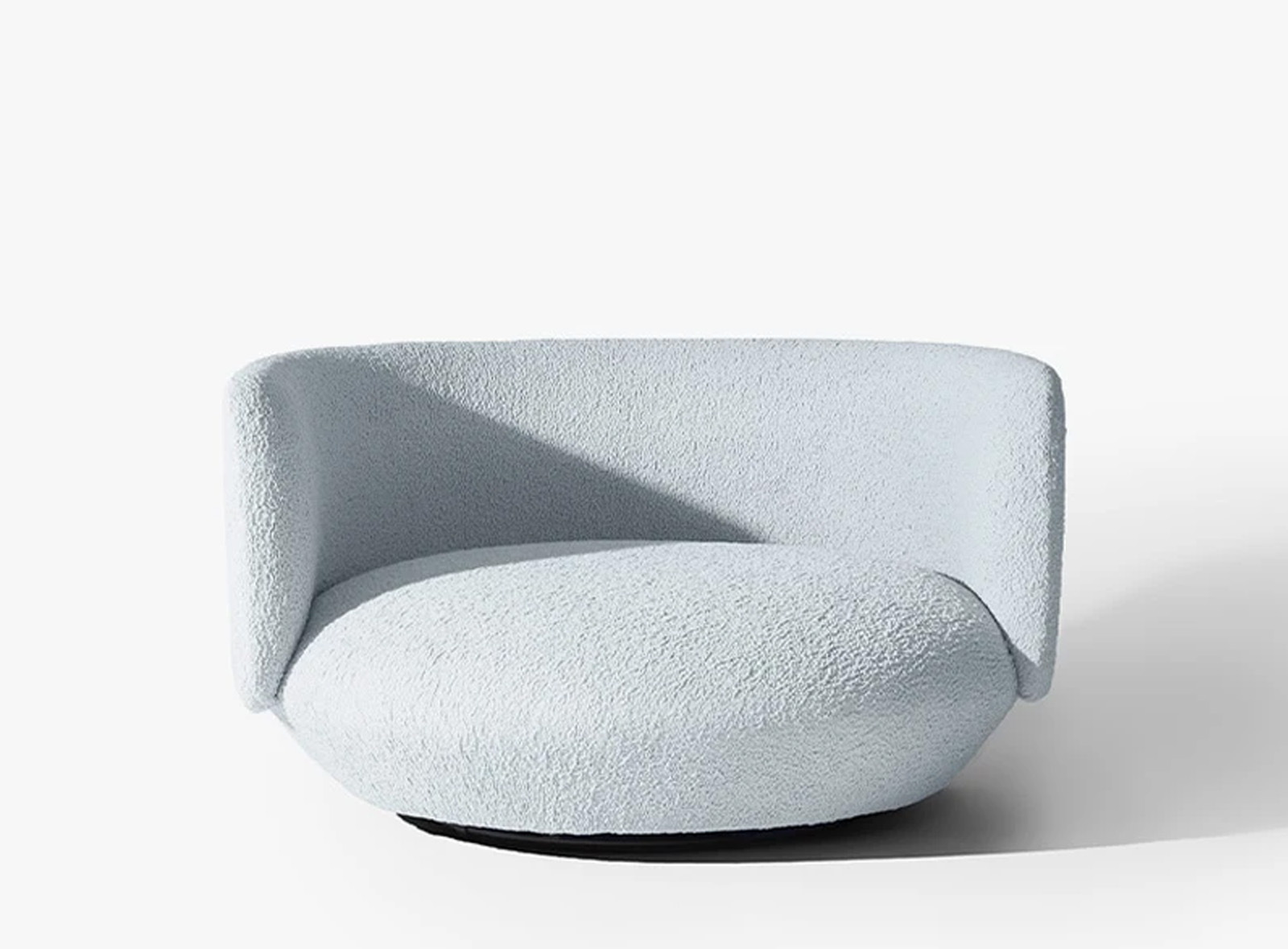 Baixa Lounge chair with the new WE—KNIT 005 cover. A warm and natural texture which increases the product confort and natural look. Baixa (“low” in Portuguese) lounge chair is a fusion between casuality and comfort. Its circular structure close to the ground invites to quietness, providing a casual and relaxing seating. The exclusive WE—KNIT covering — made from recycled PET bottles — offers a soft and warm touch on a seamless surface.