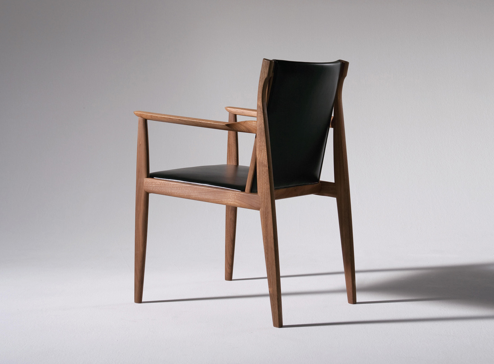 The detailing on the sculptured armrests and the lines of the legs are unique. High-end carving of the armrests reminds of the ancient statues of Buddha. The powerful design that embodies calmness and combines old elements into something stunningly new. Design: Shinsaku Miyamoto.