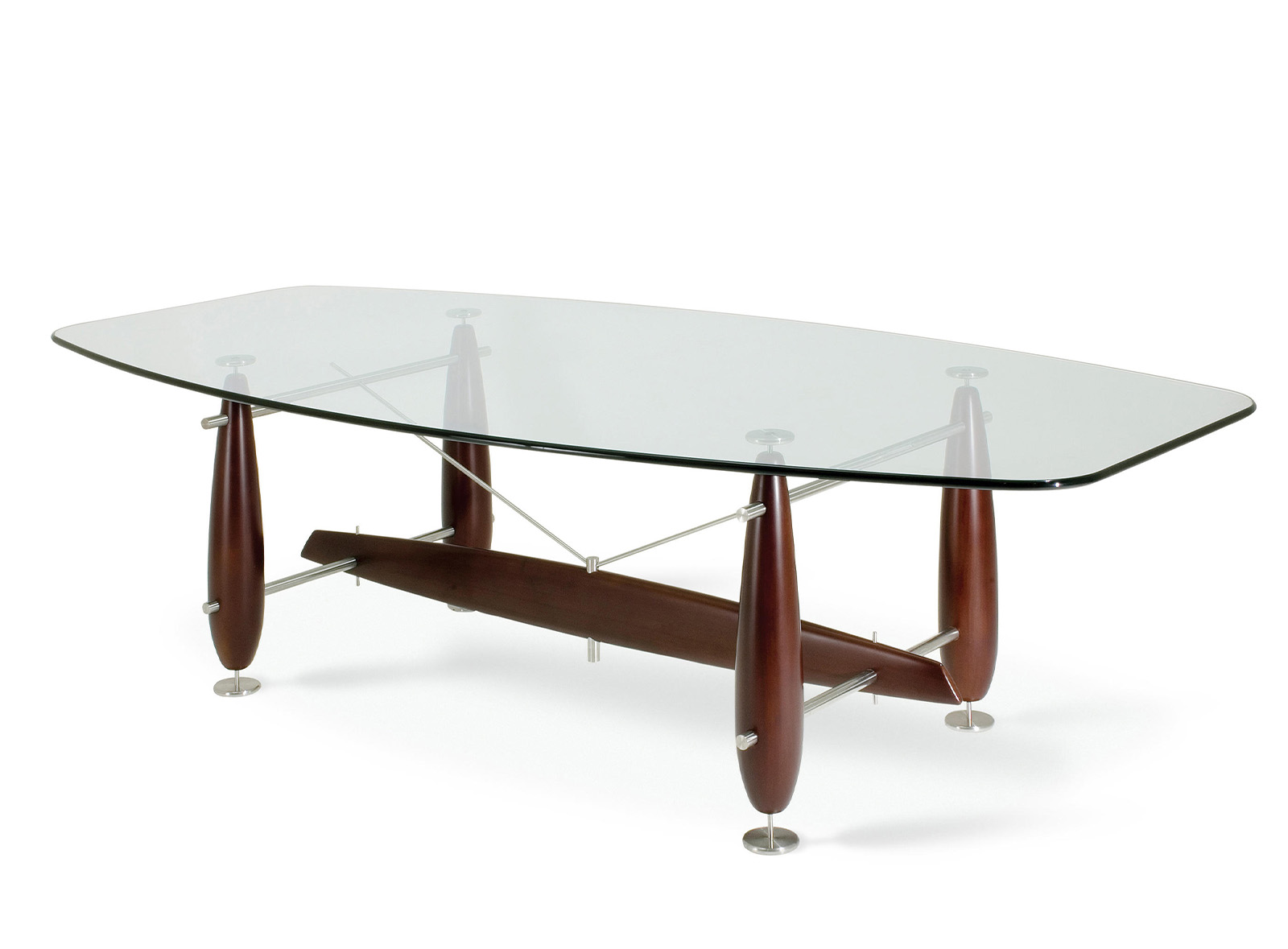 Jua dining table is one of the newest Rodrigues’ designs, which inherits all stylistic traits of Brazilian mid-century modern. Massive sculptural legs support thin and elegant tabletop.