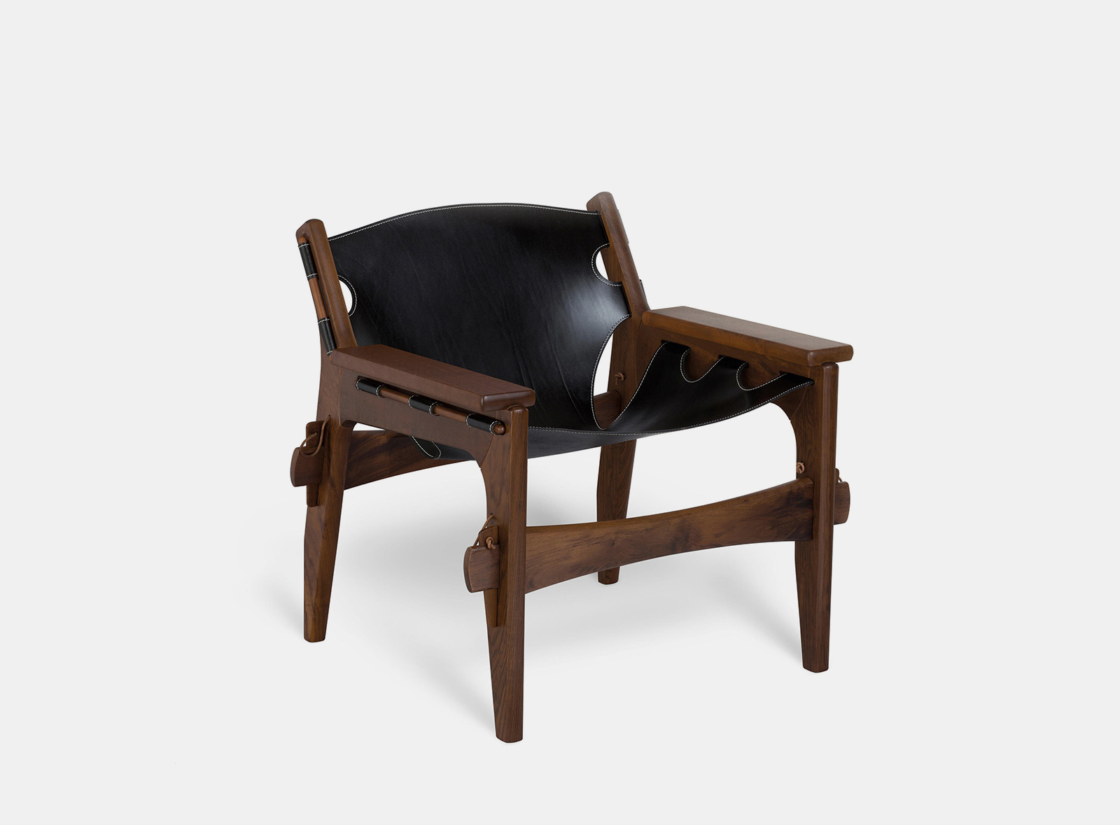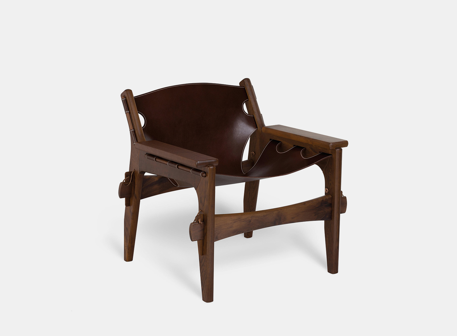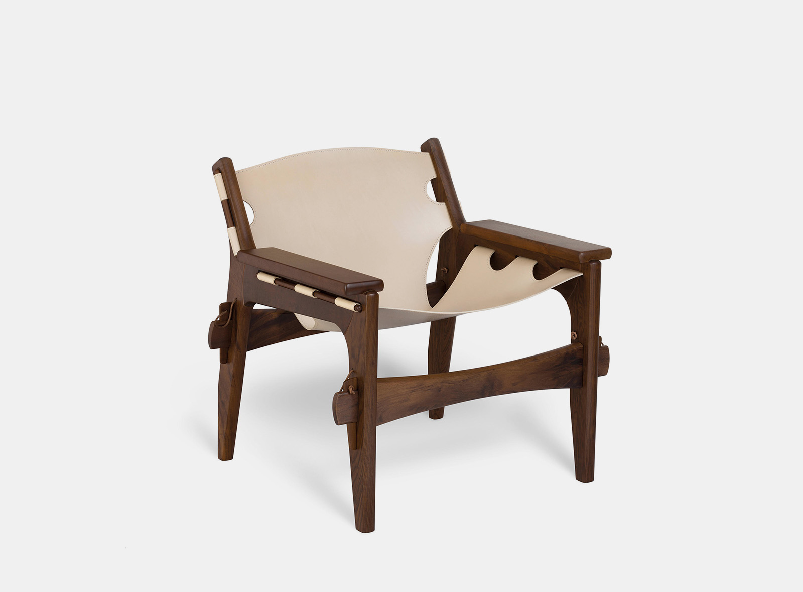 The design of the ‘Kilin’ armchair, evident of Sergio Rodrigues’ signature forms and materials, consists of a wood frame and leather sling slipcover that are assembled by dowels and pins, and considerably lighter than Rodrigues’ other iconic armchairs. With its name derived from an abbreviated version of Rodrigues’ tender nickname for his wife, ‘esquilinho’ (or ‘small squirrel’), the ‘Kilin’ is a straightforward and versatile armchair that quickly became a Brazilian design classic and bears a little of Rodrigues’ personal history within it.