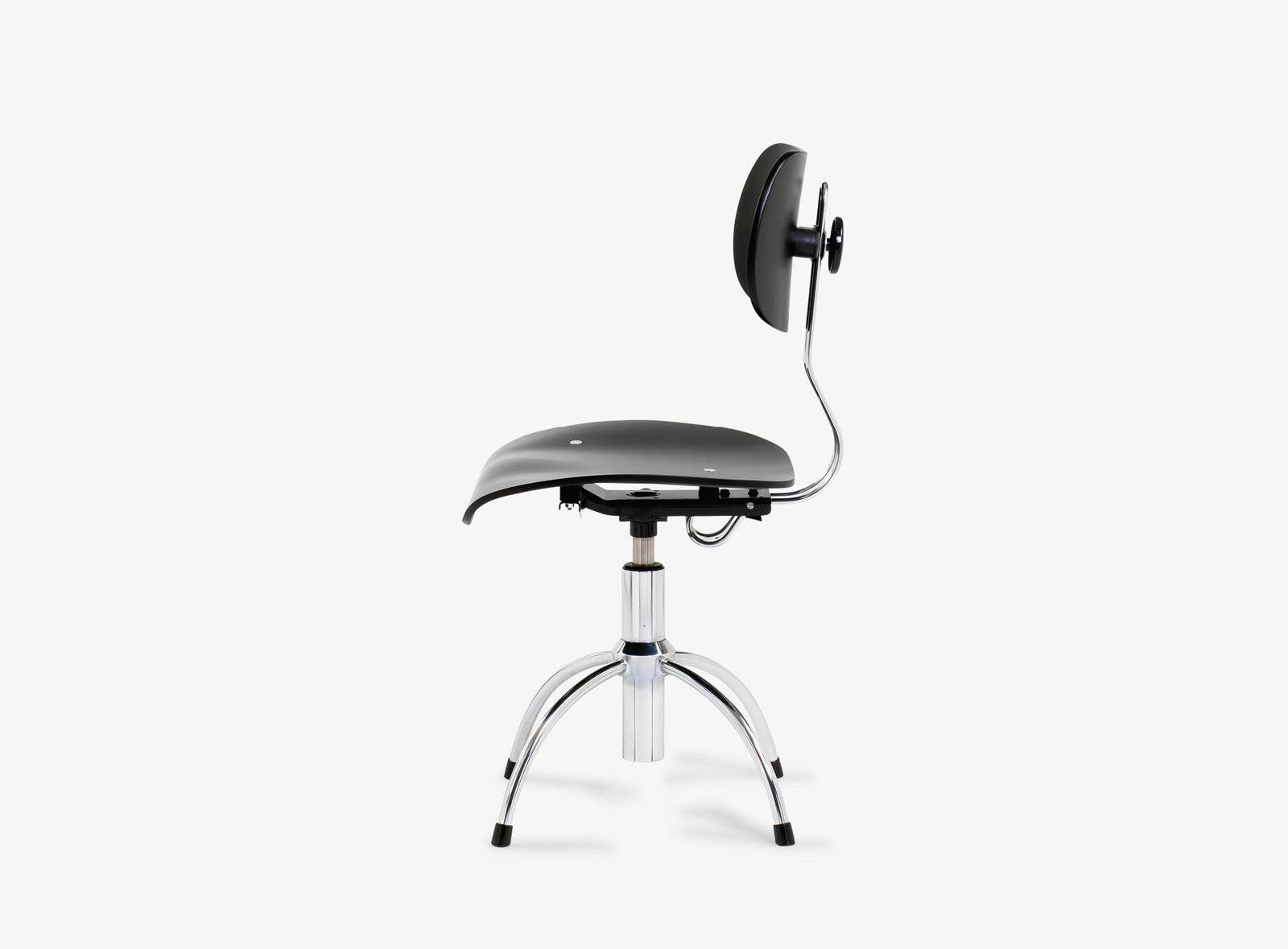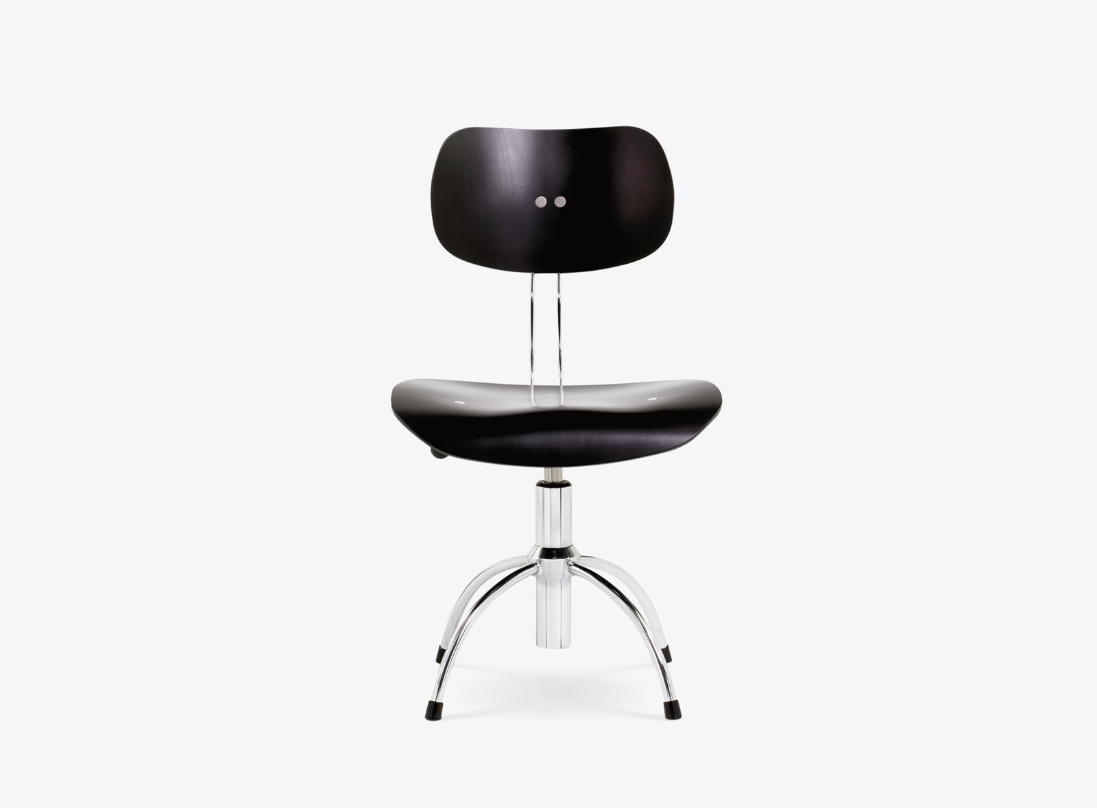 The working chair SE 40 came to trade in 1952. It continued the row of Eiermann’s furniture. The steel frame with the middle column is height adjustable. Eiermann decided to take the same seat and backrest like for the SE 42. This had production-economic and ergonomic reasons.