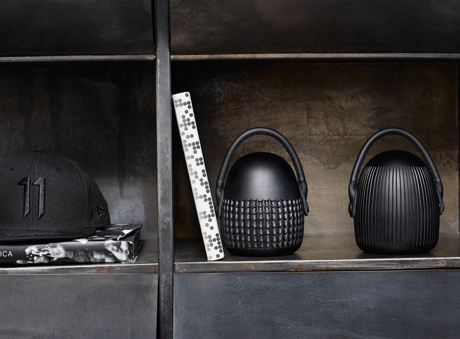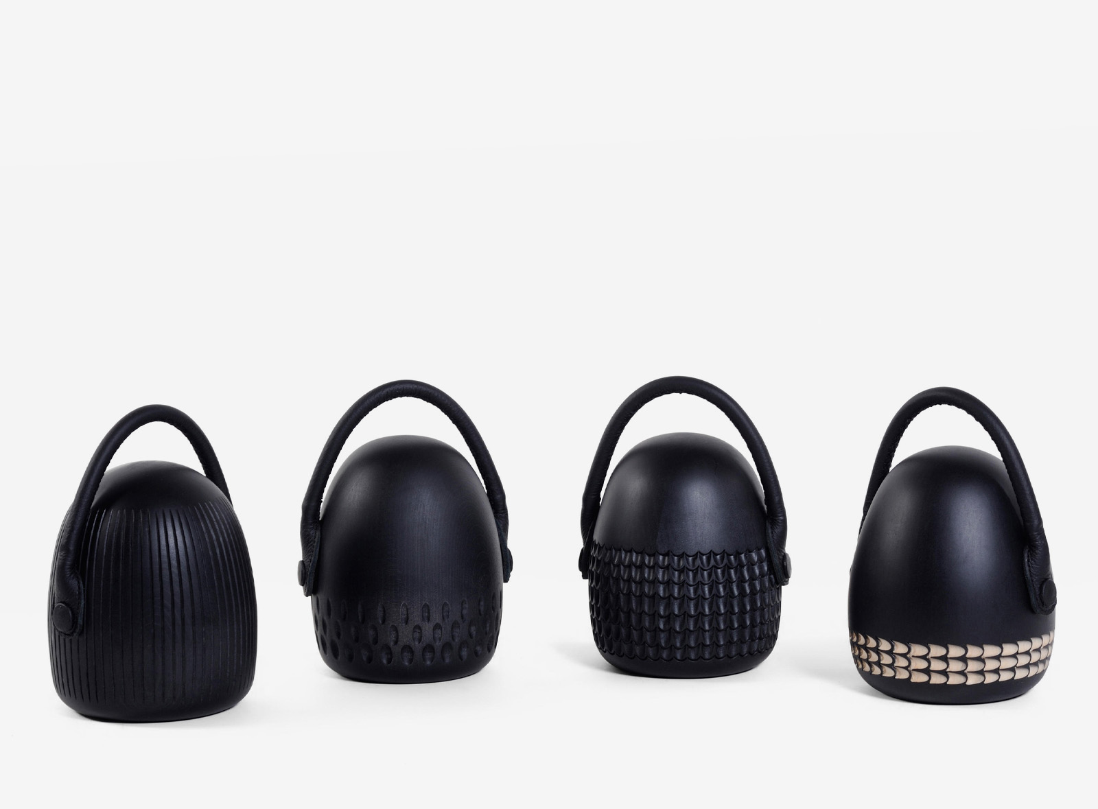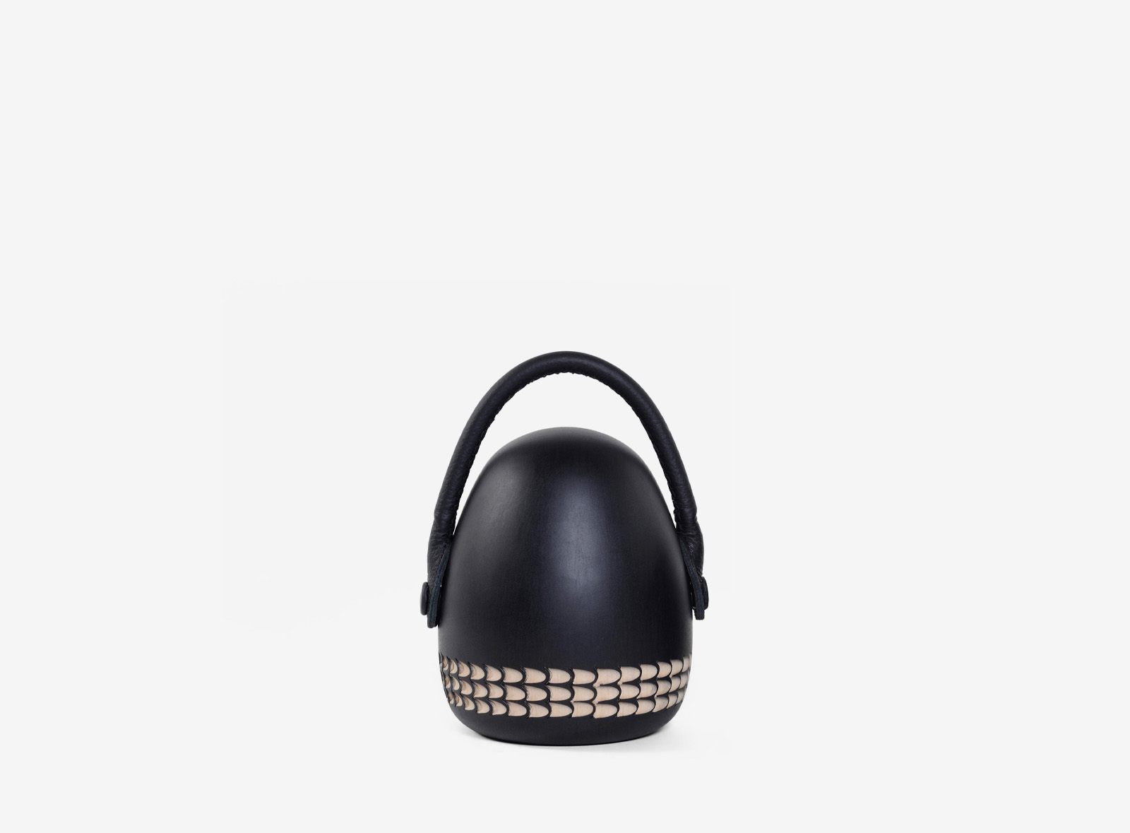 Stopme bookstop/doorstop is a cute decorative object with a hand-carved cone base and skillfully stitched handle in leather. It can be used as a decorative object on a shelf, but it was also designed with a function in mind: to stop a stack of books from falling or stop an open door from closing. Other functions are up to the creativity of users. Design: Monica Förster.