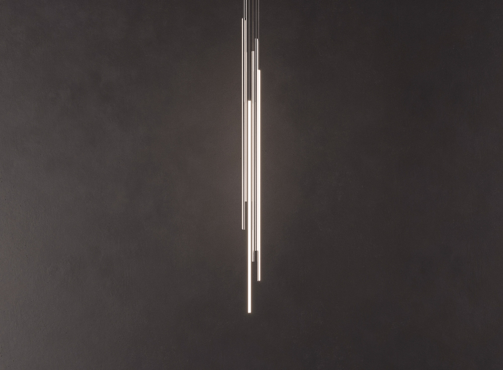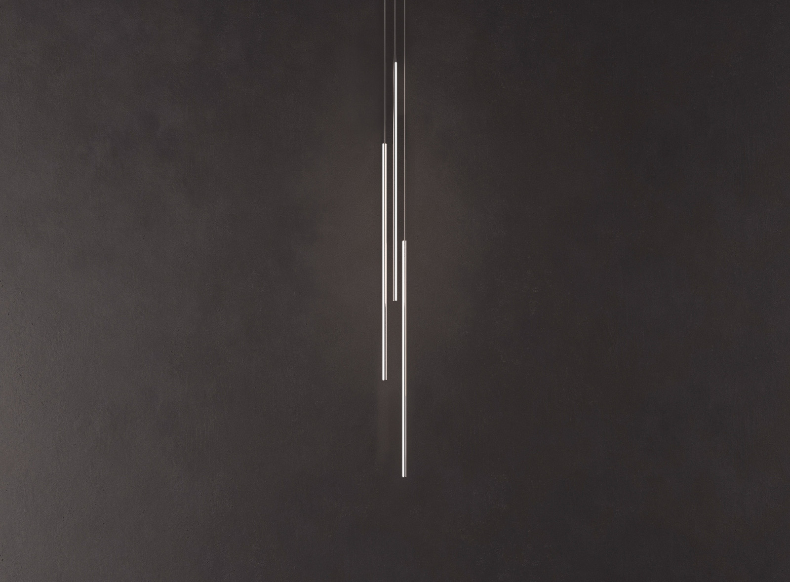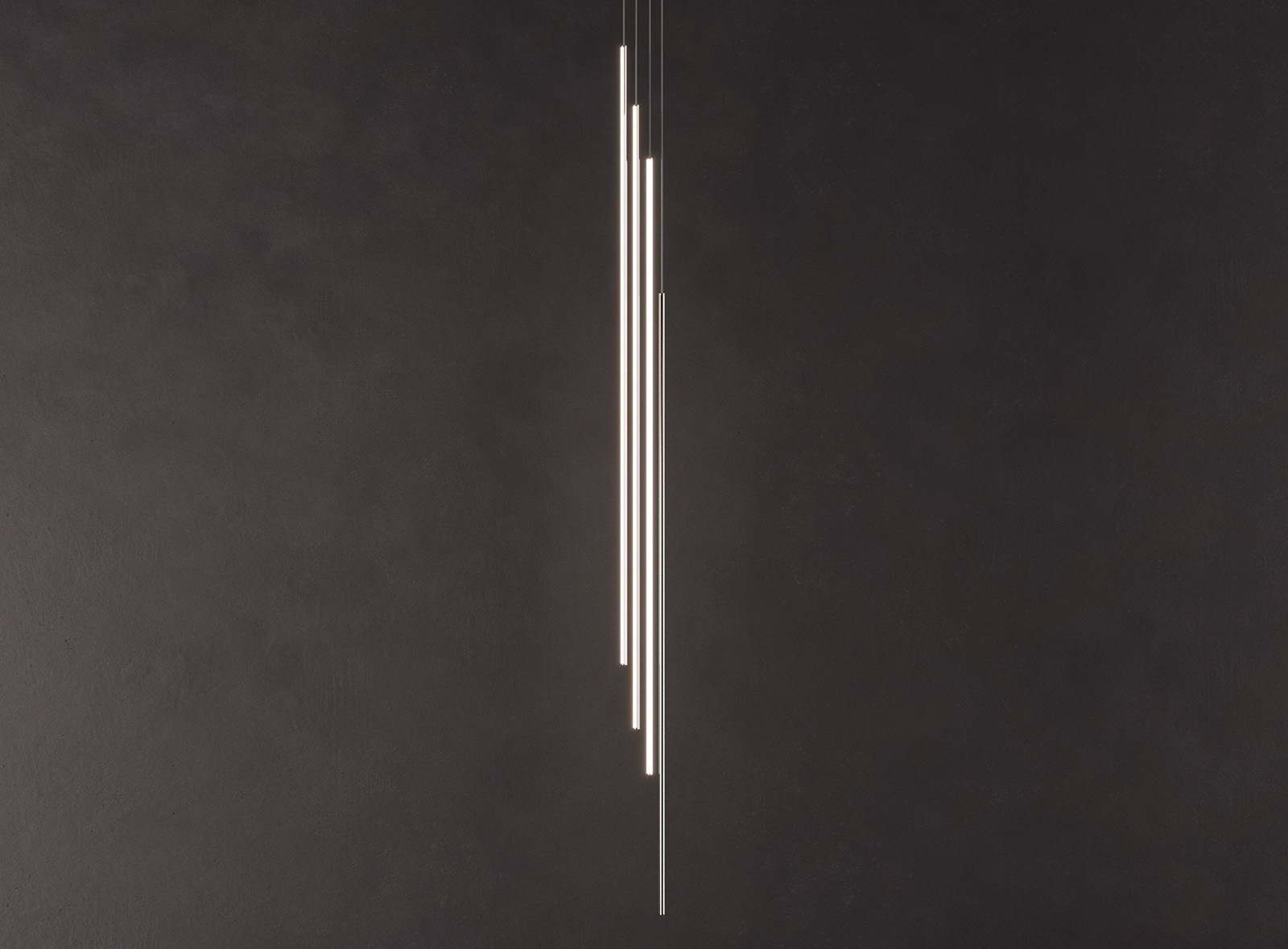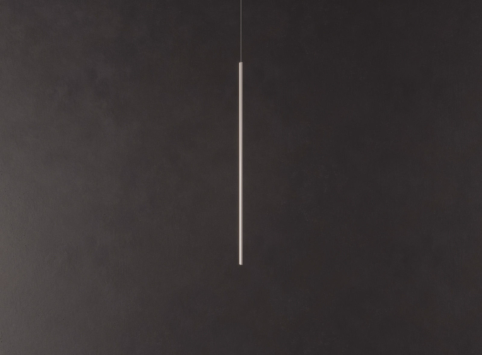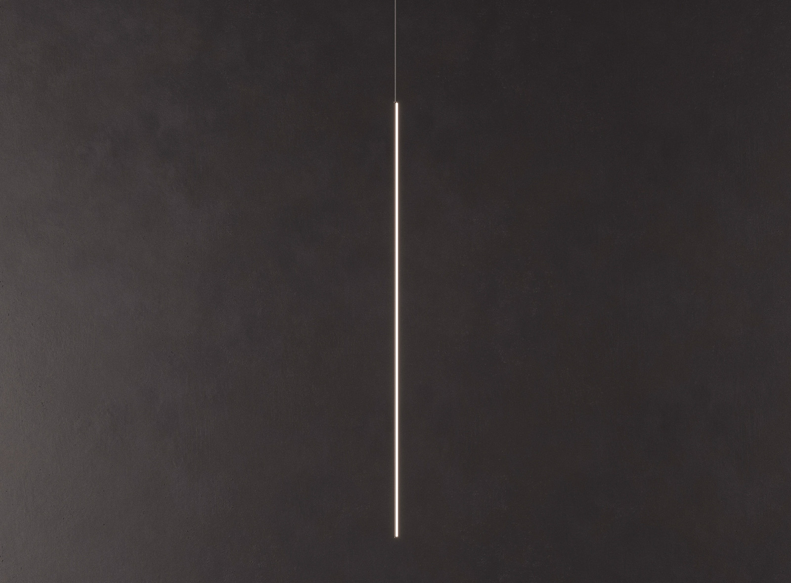 The Thin Vertical Suspension is characterized by the simplest of forms — a line. Modern and minimal, the 1/2-inch diameter Thin Vertical Suspension hangs from a single mounting point and can be installed in solitary or clustered configurations.