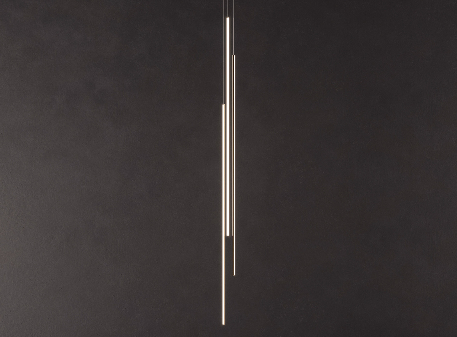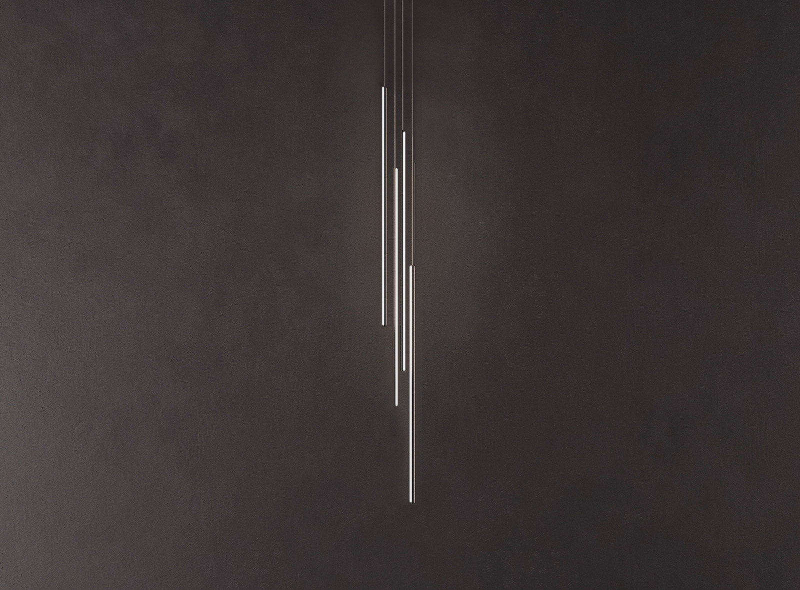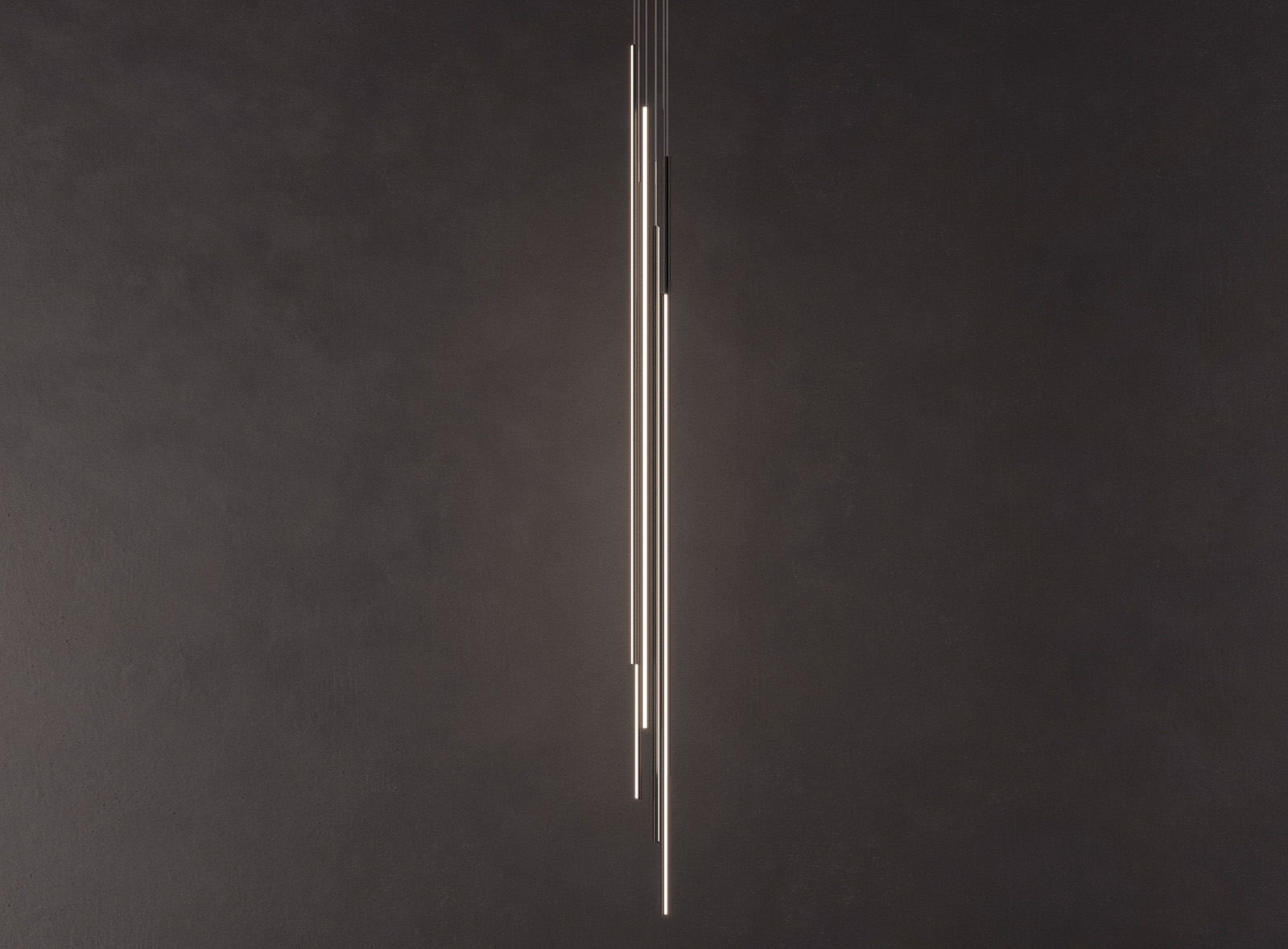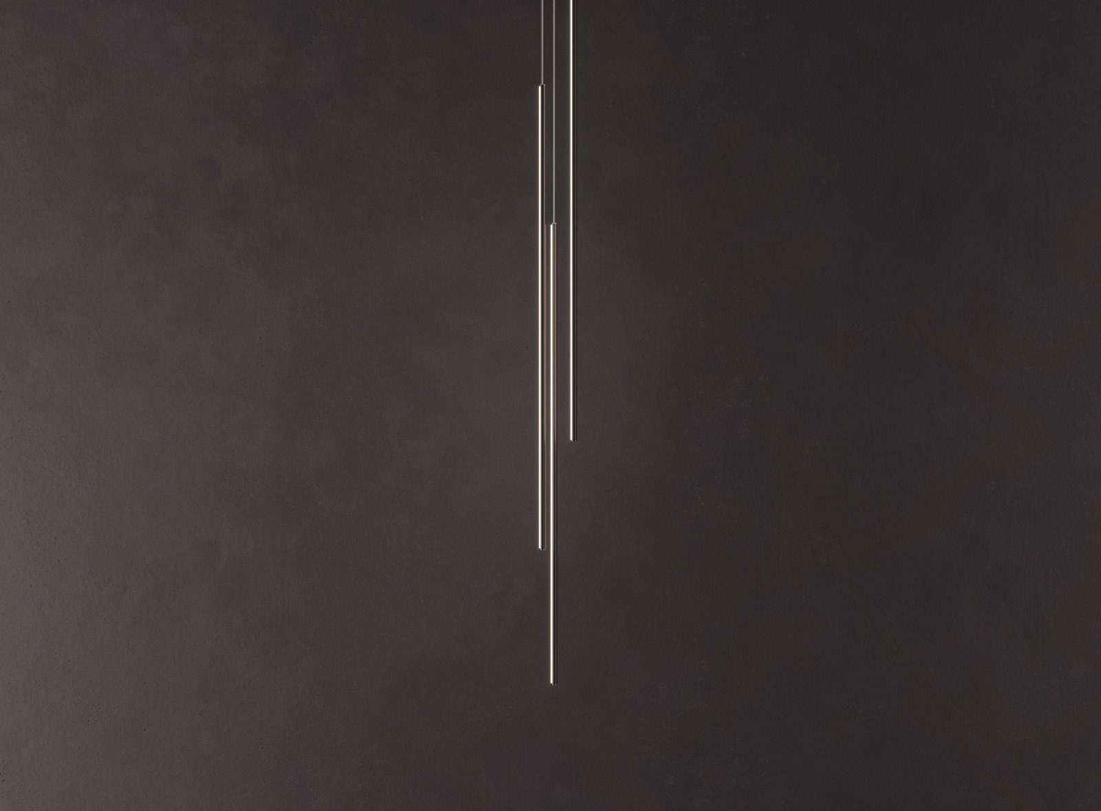 The Thin Vertical Suspension is characterized by the simplest of forms — a line. Modern and minimal, the 1/2-inch diameter Thin Vertical Suspension hangs from a single mounting point and can be installed in solitary or clustered configurations.
