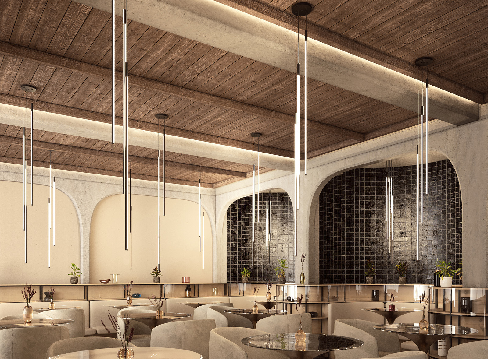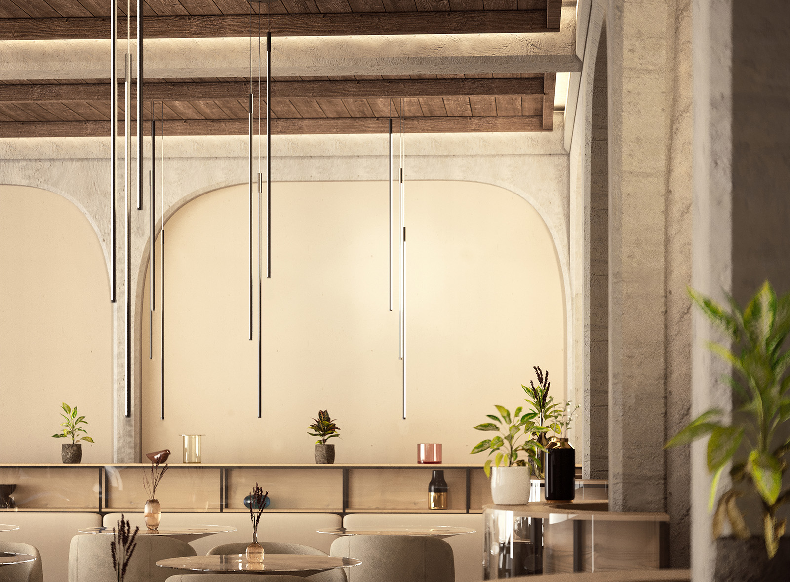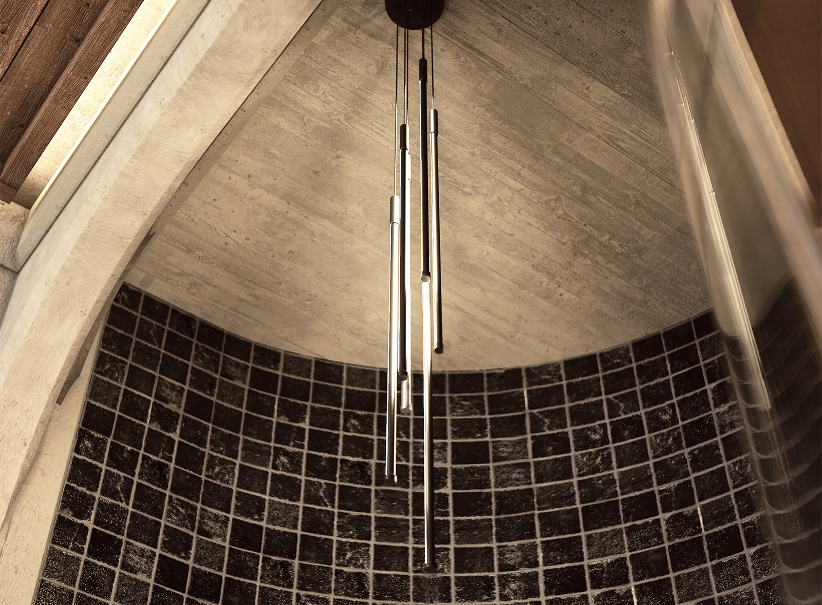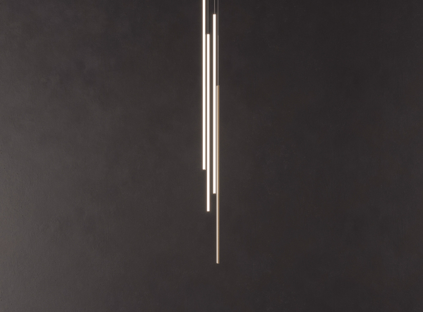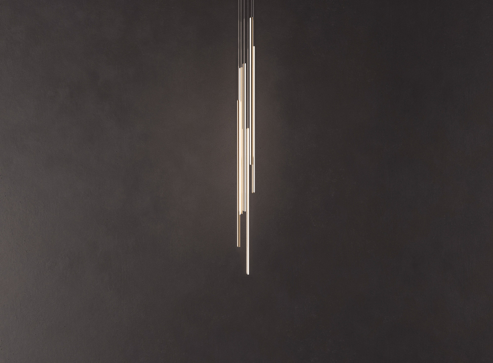 The Thin Vertical Suspension is characterized by the simplest of forms — a line. Modern and minimal, the 1/2-inch diameter Thin Vertical Suspension hangs from a single mounting point and can be installed in solitary or clustered configurations.