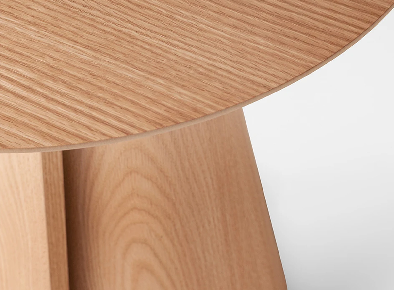 The Volta table refers to nature in its impermanence. The organic shape of its base gives the feeling of movement and constant (re) construction. While the evident texture on its surface highlights the natural finish of the veneer.