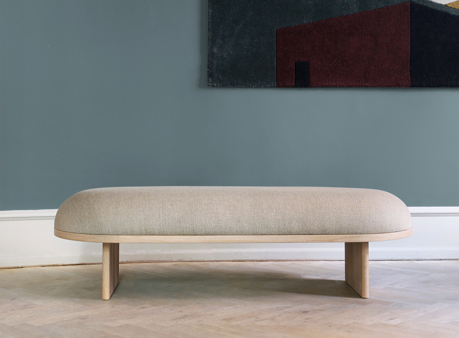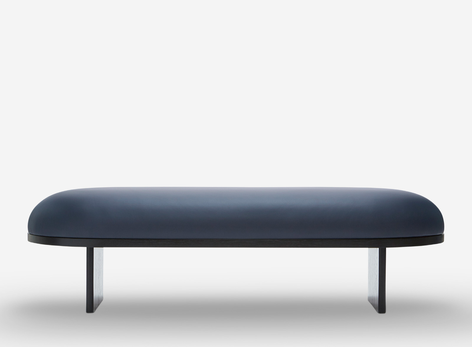 Скамья Anza с мягким сиденьем, длина — 160 см. В серию Anza, название которой переводится с японского как «удобно сидеть», вошли пуф, скамьи нескольких размеров и приставные столы. Anza является частью более широкой модульной коллекции мебели, призванной улучшить эстетическую составляющую пространства. Дизайн: Руи Перейра, Рёсуке Фукусада.