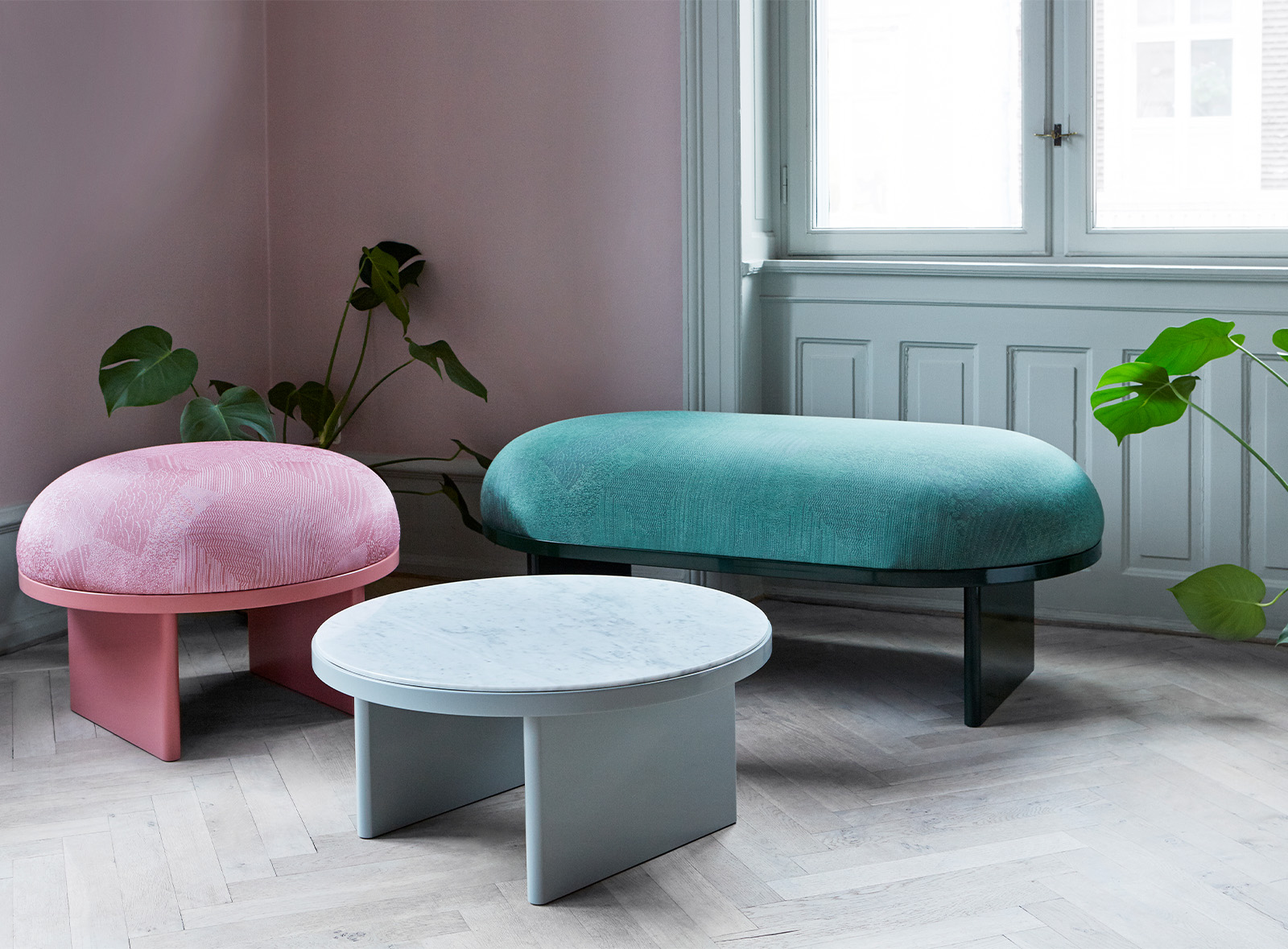 Приставной стол из коллекции Anza, столешница изготовлена из каррарского мрамора. В серию, название которой переводится с японского как «удобно сидеть», вошли пуф, скамьи нескольких размеров и кофейные столы. Anza является частью более широкой модульной коллекции мебели, призванной улучшить эстетическую составляющую пространства. Дизайн: Руи Перейра, Рёсуке Фукусада.