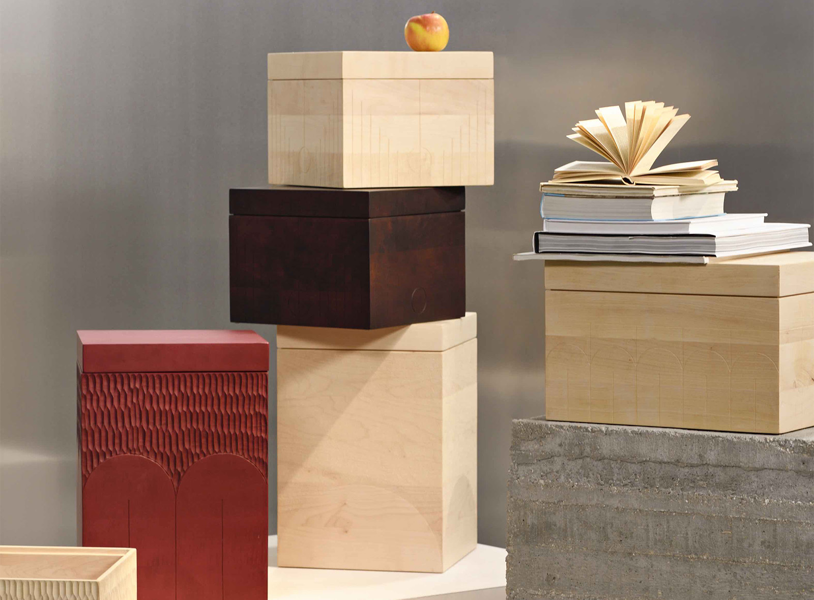 Ящики Branco из массива клёна, доступны в трёх размерах. Дизайн вдохновлён работами скульптора-модерниста Константина Бранкузи, который искусно владел резьбой по дереву. Многофункциональные изделия также могут быть использованы в качестве небольших приставных столов. Дизайн: Моника Фёрстер.