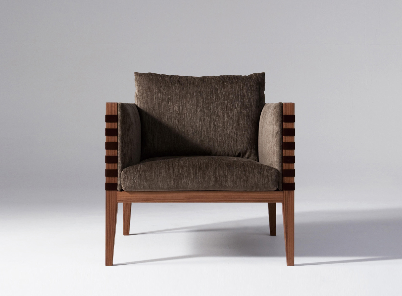 Квадратная форма кресла Lupin воплощает в себе подлинные комфорт и эргономичность. Декоративные ремни из кожи, украшающие его корпус, в полной мере раскрывают красоту материала. Дизайн: Atelier D.Q.