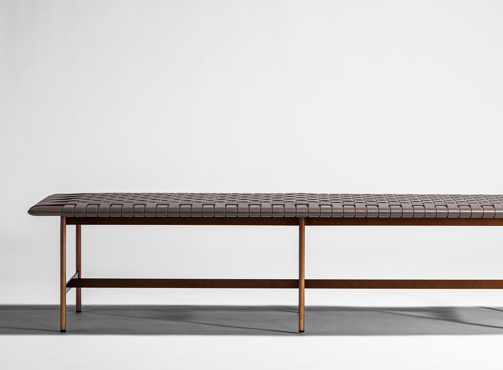 Дизайн скамьи MT сочетает в себе традиционное мастерство японских ремесленников и современные течения. Плетёное сиденье из кожаных ремешков дополняет корпус из древесины ореха или дуба. Многофункциональное изделие доступно в различных цветовых решениях и в двух размерах на выбор. Дизайн: Синсаку Миямото.