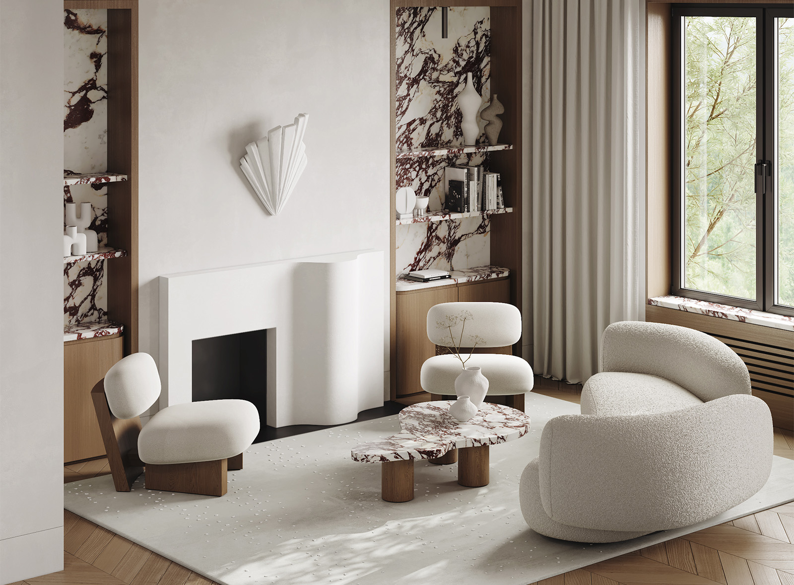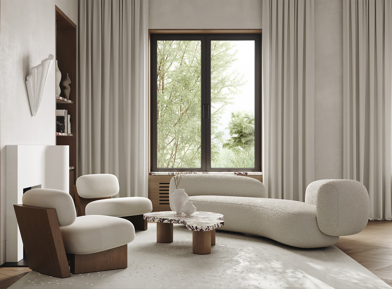 Reverb — диван, обладающий слегка асимметричной формой. Глубина сиденья неоднородна, напоминающая арку спинка плавно перерастает в подлокотники. Силуэт дивана продуман таким образом, чтобы сидящие на нём люди были обращены к друг другу лицом.