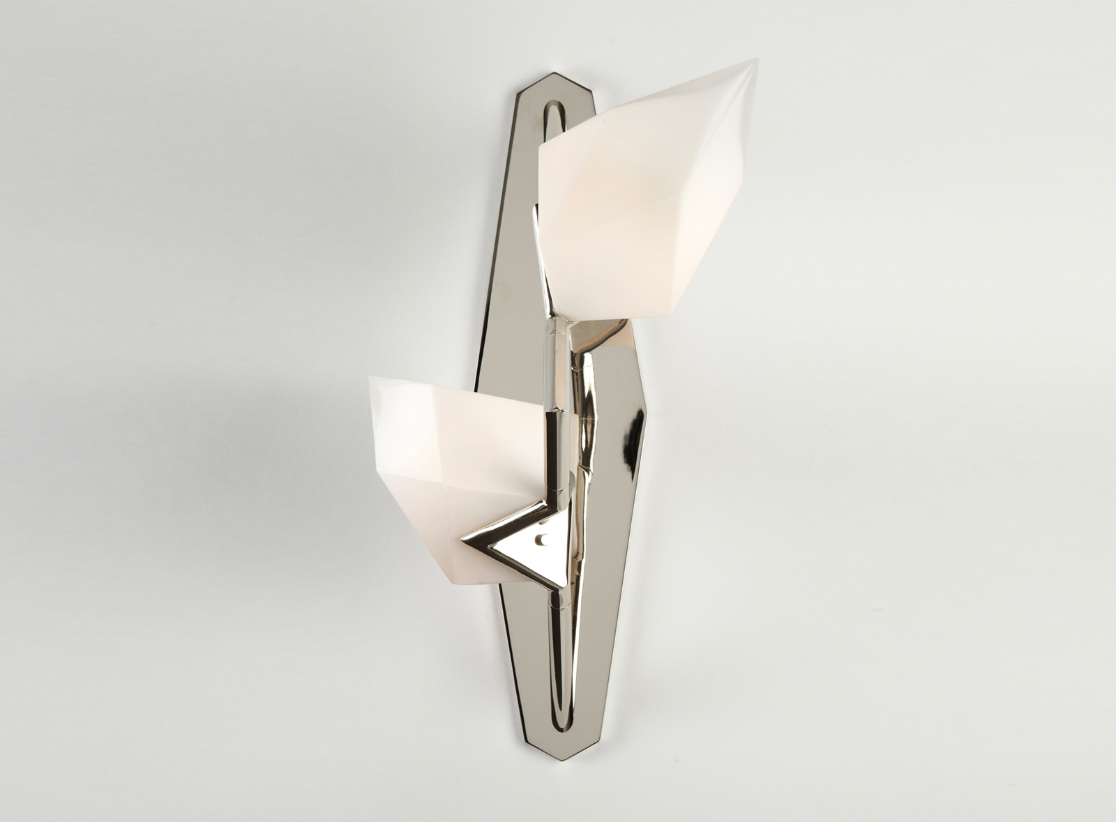 Бра Seed с двумя плафонами. Дизайн серии Seed — это посвящение естественному процессу образования кристаллов. Гранёные плафоны крепятся к латунному основанию. При производстве плафонов используется особая технология литья с последующей холодной обработкой, позволяющей добиться максимальной остроты граней.
