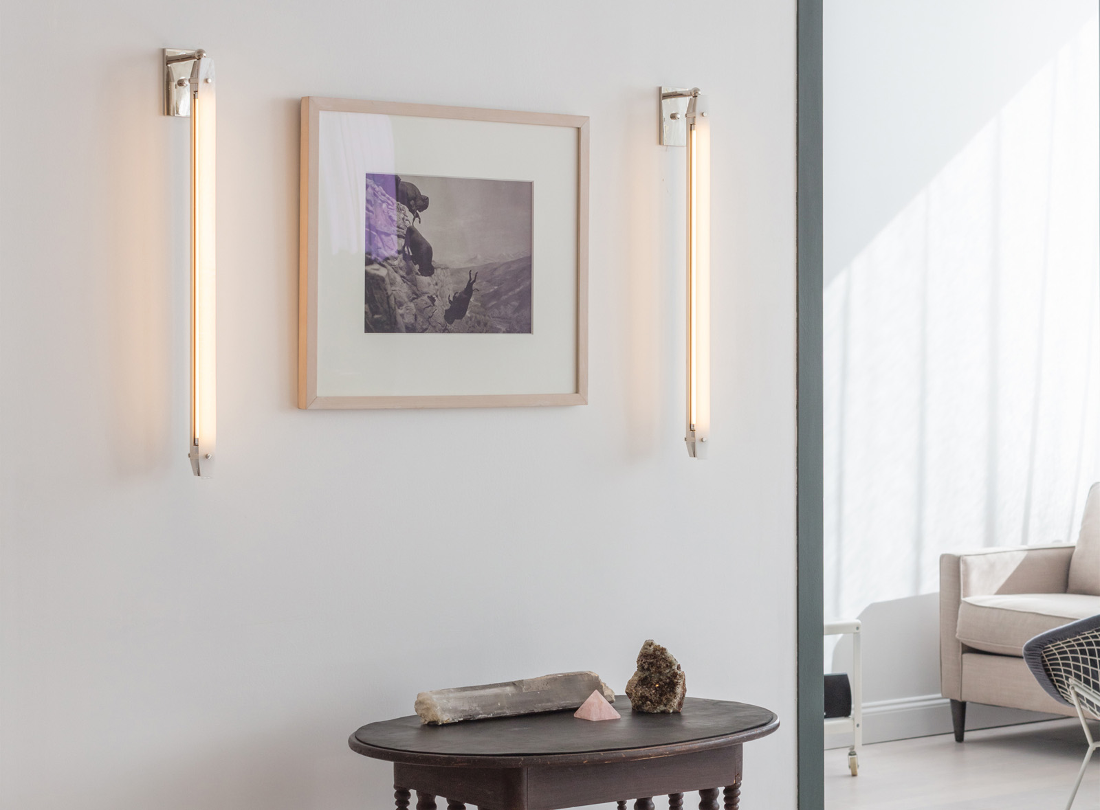 В качестве источников света предметов серии выступают тонкие светодиодные трубки, дублирующие линии конструкции. Особые шарниры позволяют изменять форму изделий исходя из особенностей пространства.