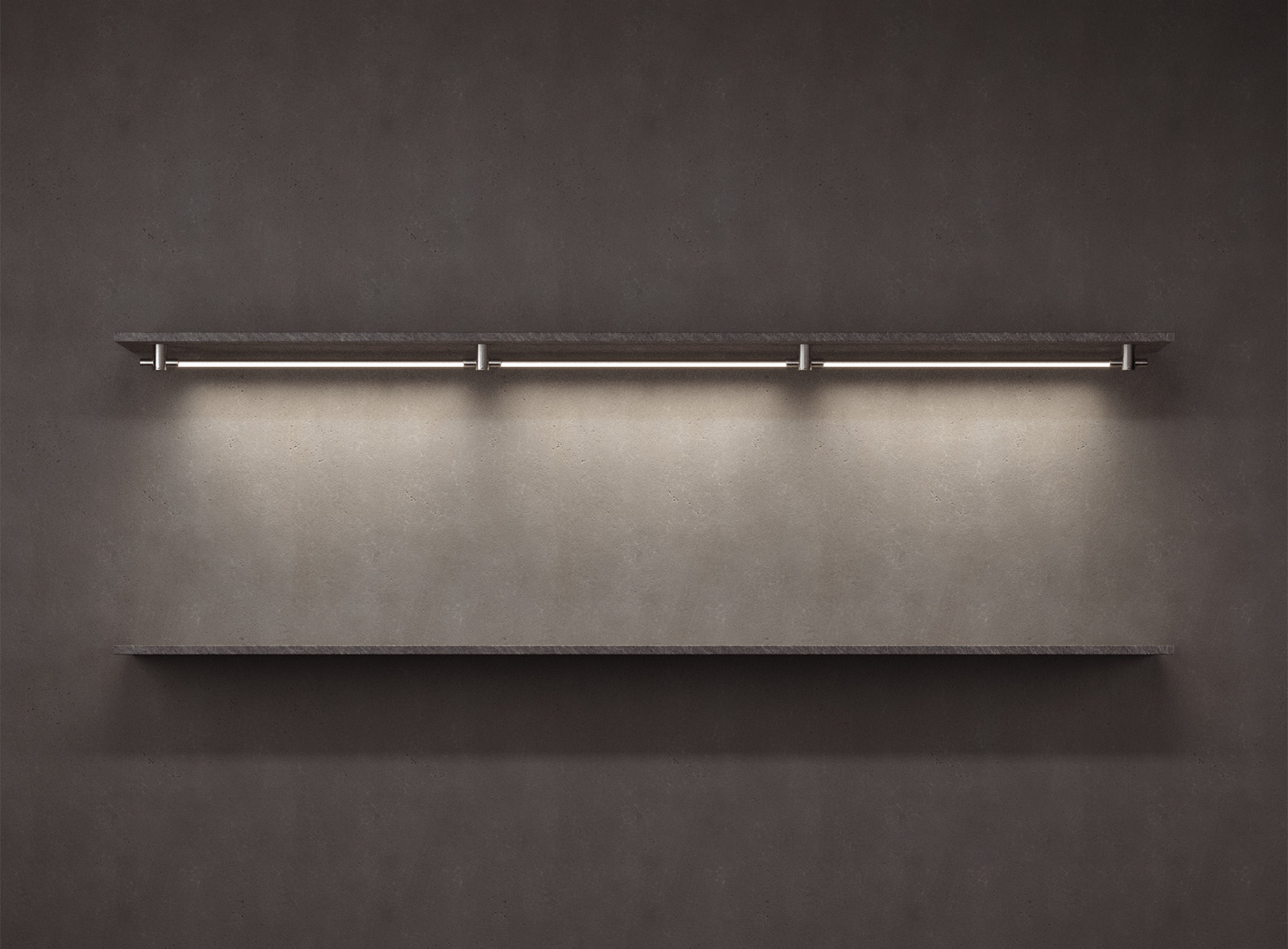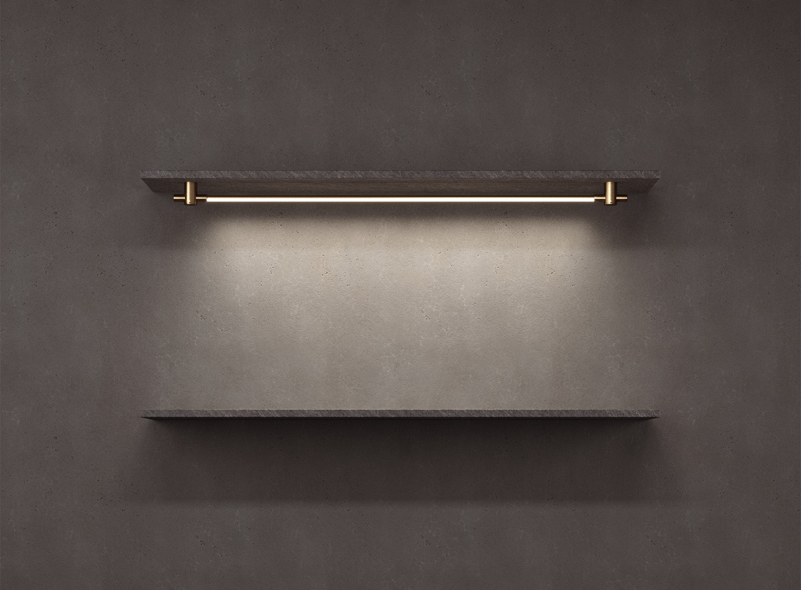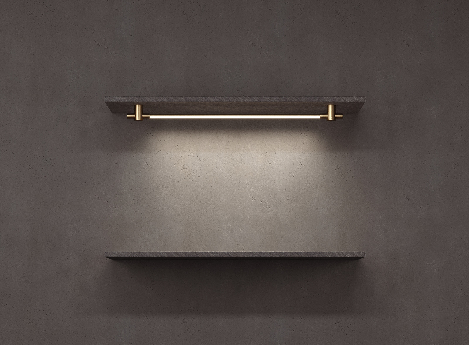 Настенная подсветка Thin Display оснащена соединяющимися светодиодными световыми сегментами, изготовленными из 1/2-дюймовых латунных трубок. Магнитное крепление между каждым сегментом позволяет вращать их на 360°.
