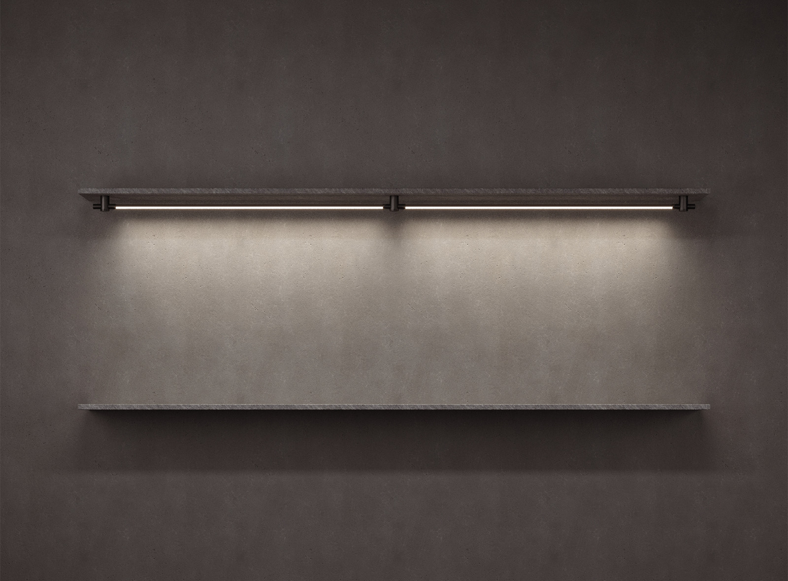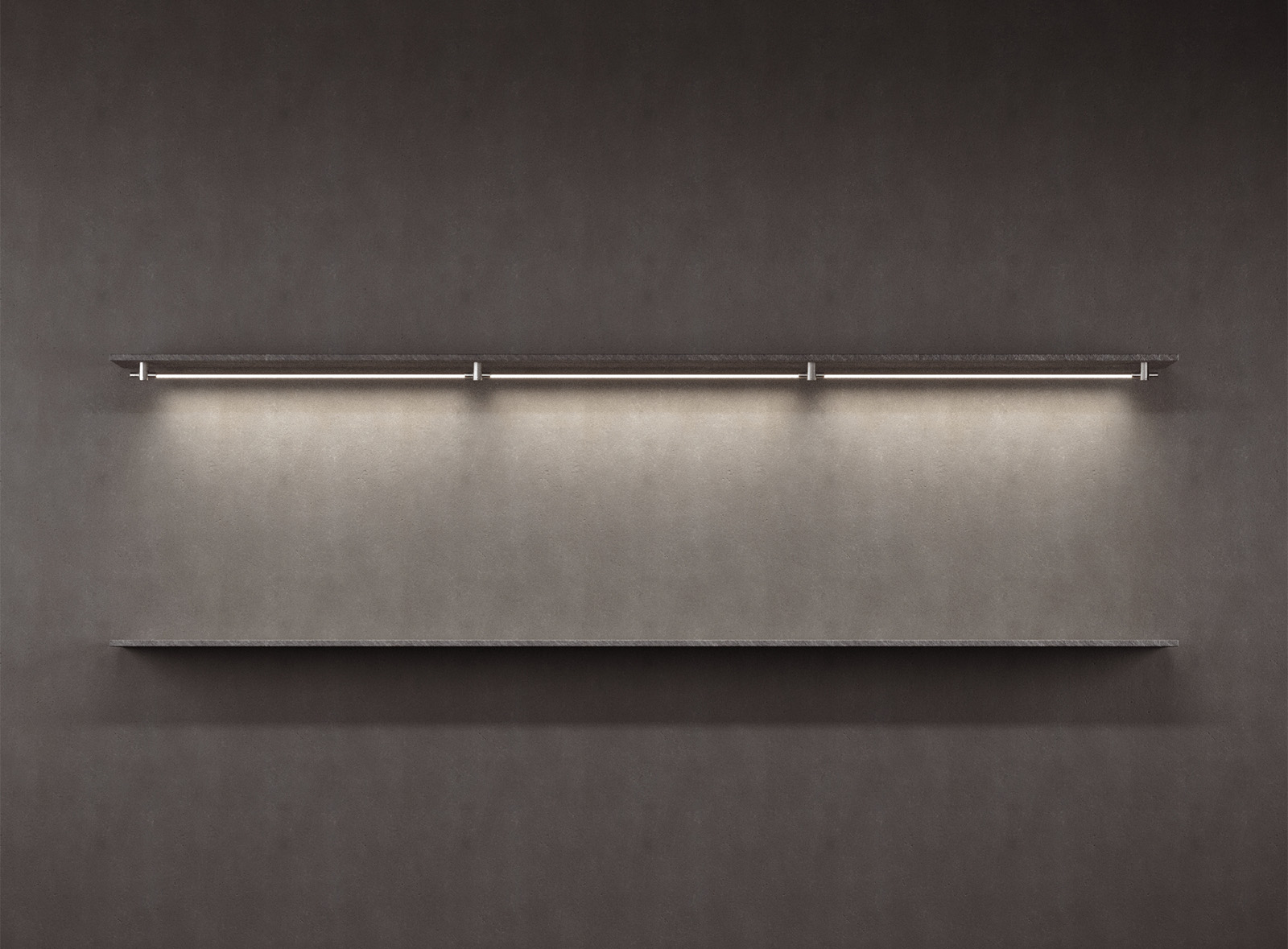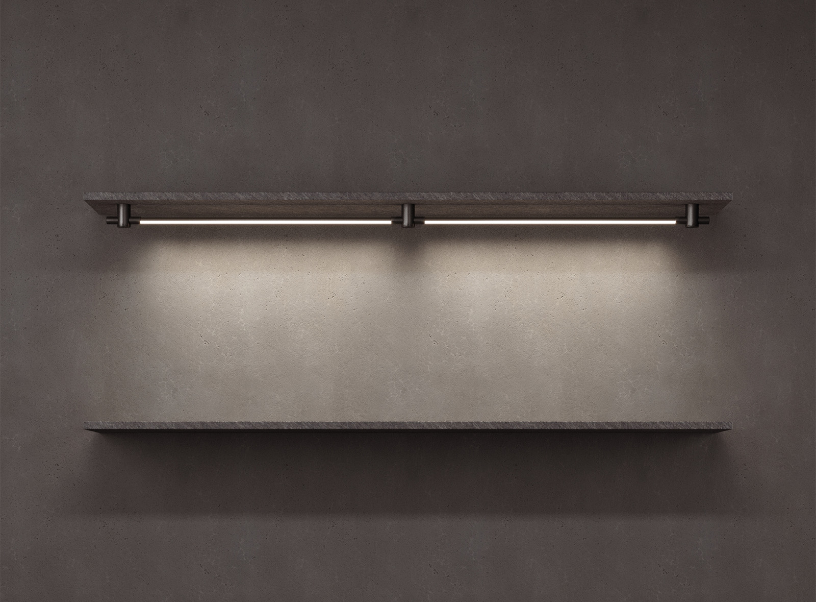 Настенная подсветка Thin Display оснащена соединяющимися светодиодными световыми сегментами, изготовленными из 1/2-дюймовых латунных трубок. Магнитное крепление между каждым сегментом позволяет вращать их на 360°.